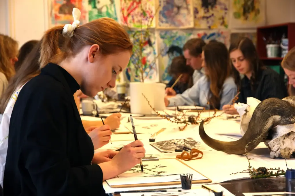 I Tegning og maleri arbejder vi med bl.a. akryl, olie, blæk og akvarel. Du lærer teknikker og metoder, maler på papir og lærred og udvikler dit eget kunstneriske udtryk i en fordybende proces.